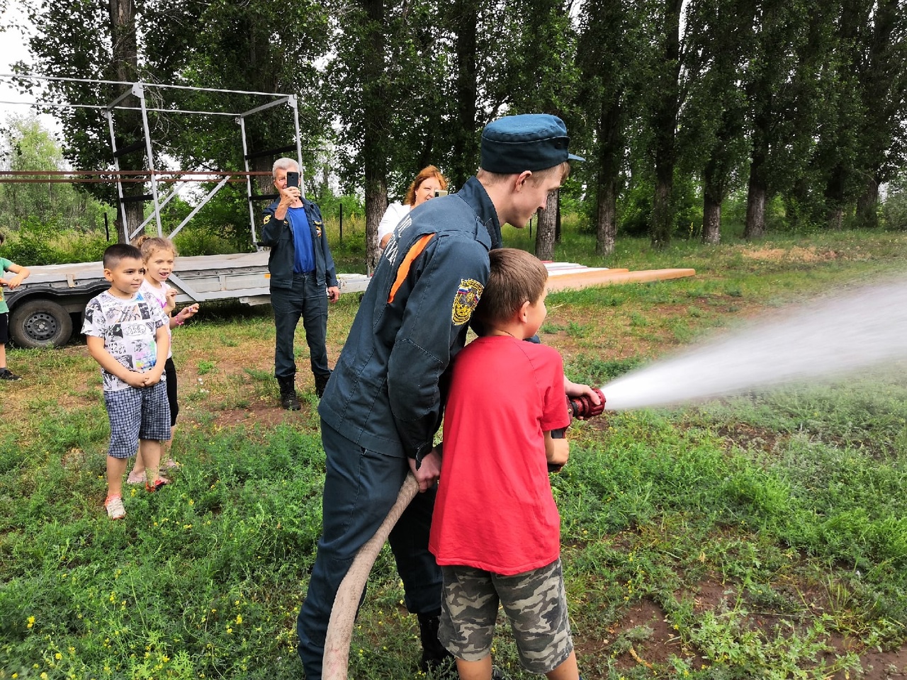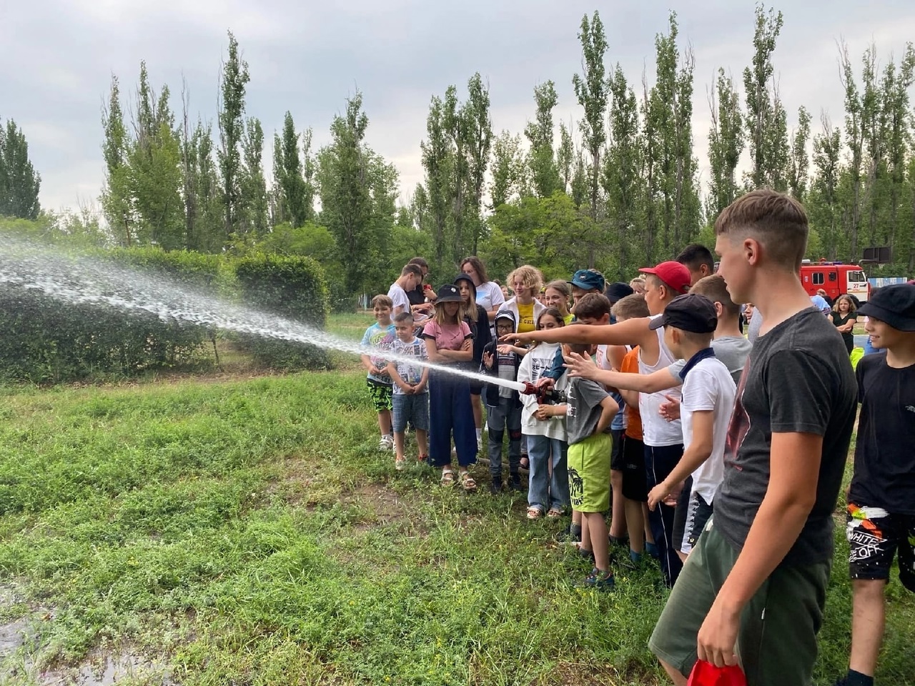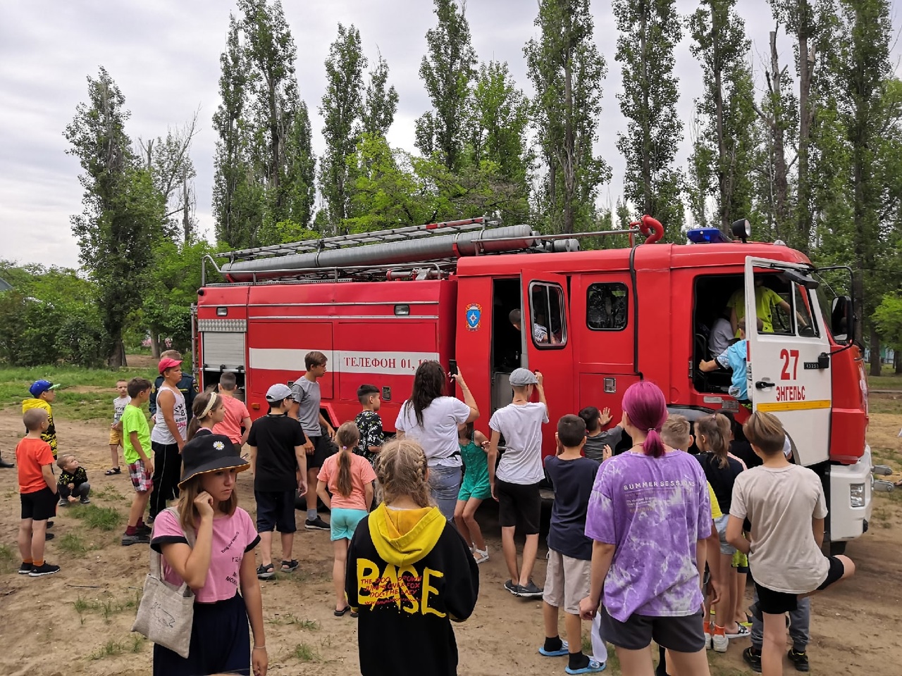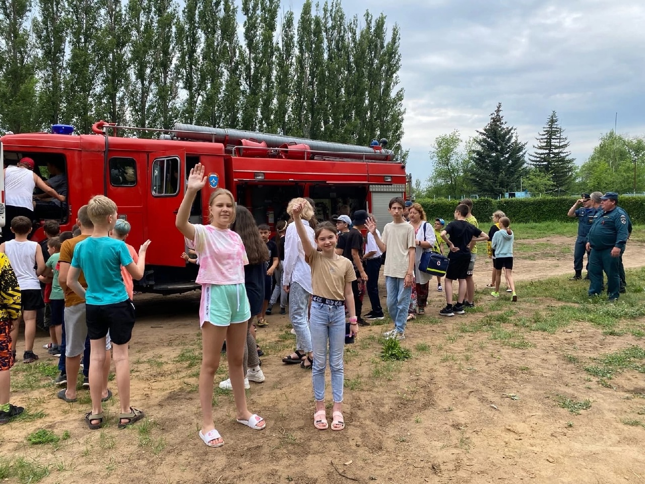 Также ребятам продемонстрировали пожарную технику, они задавали вопросы по оборудованию пожарных и сделали фото на память.