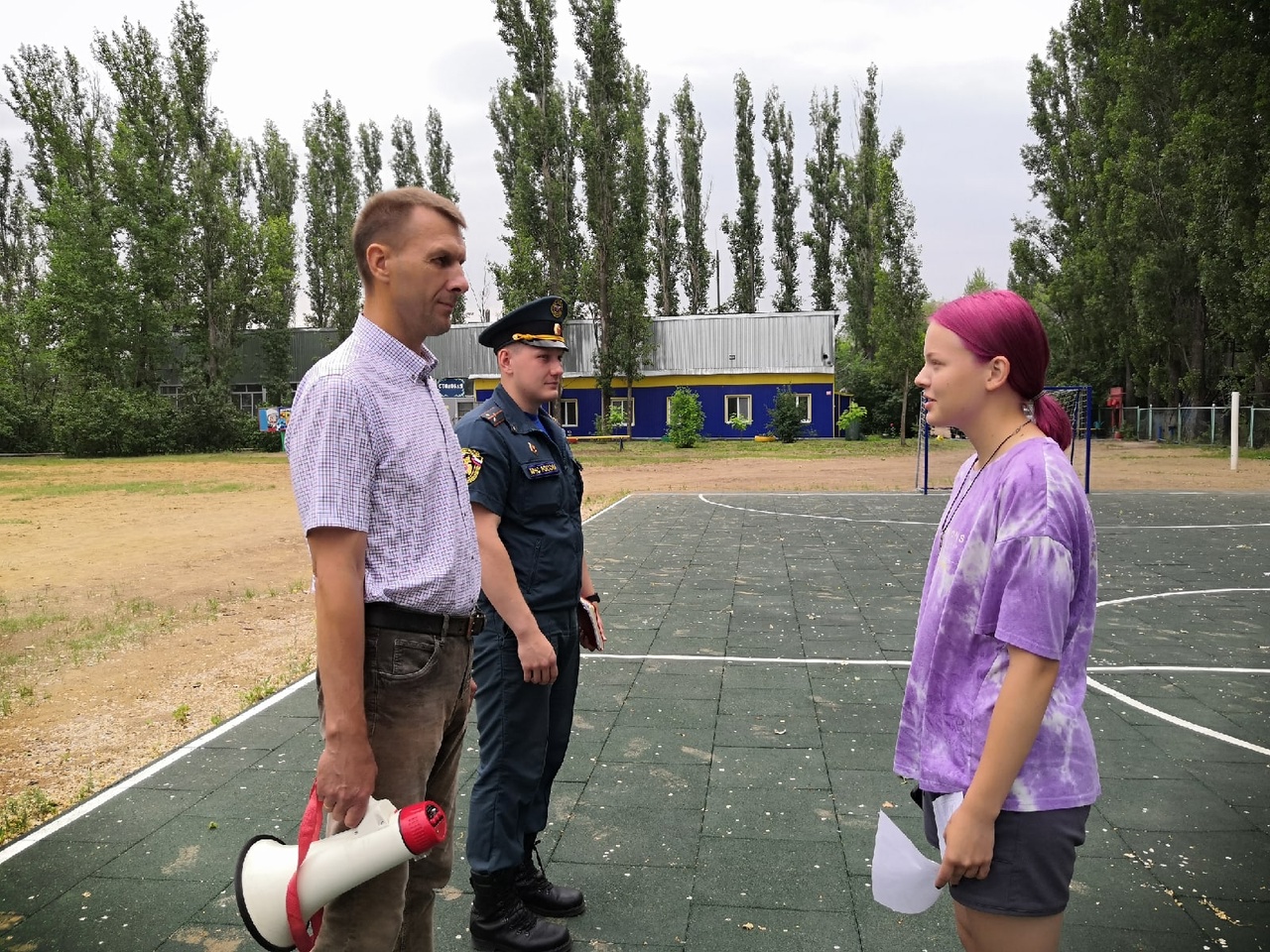 Традиционно в начале каждой смены дети совместно с сотрудниками отрабатывают мероприятия по действиям при чрезвычайной ситуации. Не стала исключением и вторая смена. Сегодня прошла учебная эвакуация под руководством сотрудников МЧС. Эвакуация детей прошла быстро и слаженно, в соответствии с инструкциями все правильно и четко выполнили поставленные задачи.