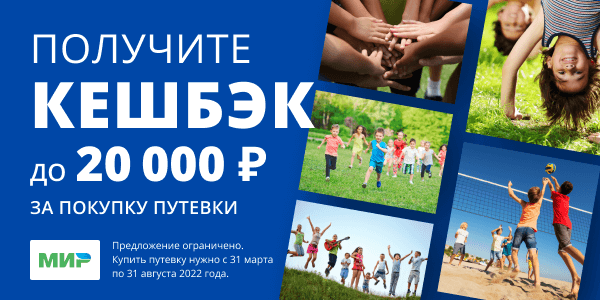 Оплачивайте путевку картой «Мир» и получайте кешбэк! Это официальная программа от Ростуризма и платежной системы «Мир».